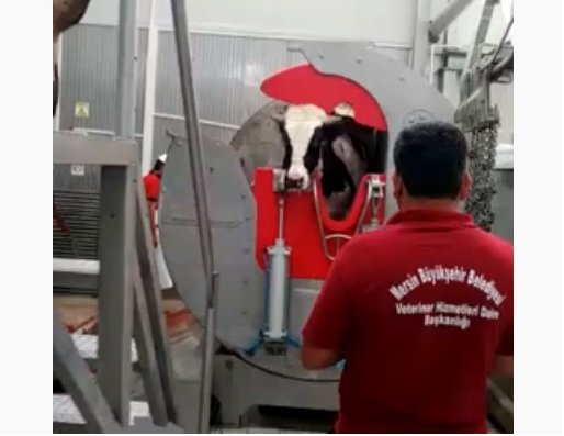 Ritual trap; provides your bovine fall onto gara by turning reaches up to 180 degrees with the help of engine reductors and with the help of collapsible floor-mounted pneumatic cylinders, in the cutting area of the bovine.