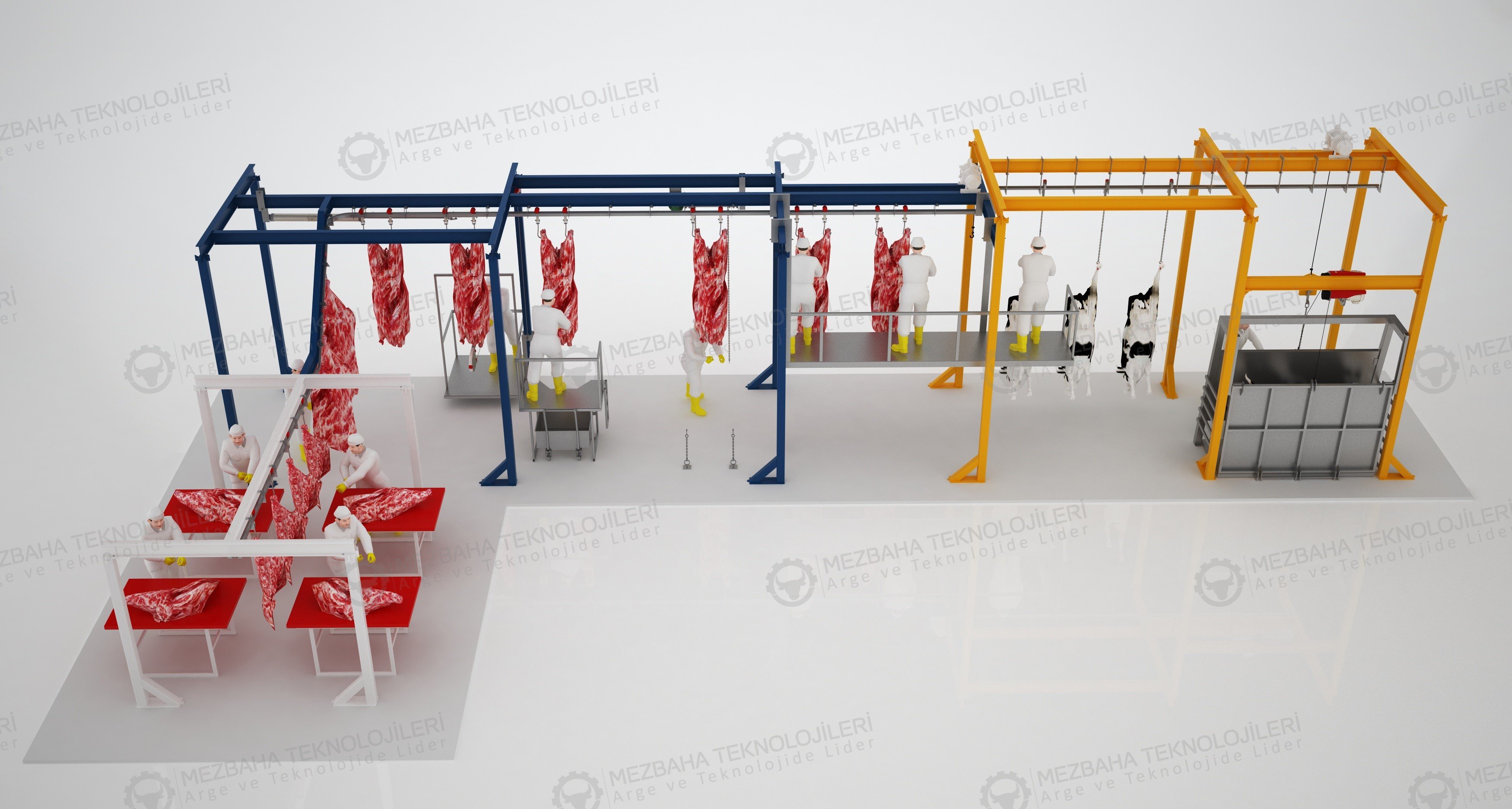 Komple Sistem . 3 mt genişlik 16 mt uzunluk 4 mt parçalama hattı. Kurban kesiminde işlerinizi pratikleştirin.